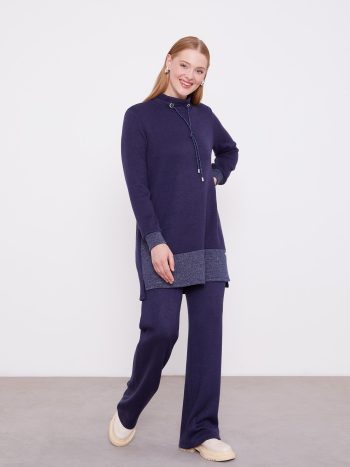 This set stands out with the harmonious silhouette of the tunic and pants, while the lace-up detail at the waist
