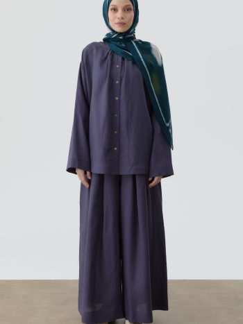 Indigo Pants with Pleated Details and Elastic Waistband