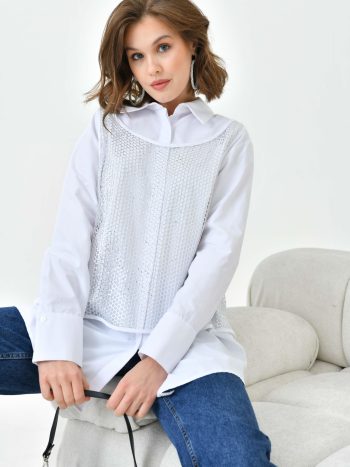 Fabric: 40% Viscose 30% Cotton 30% Acrylic Sleeve: 43 cm Collar Type: Shirt Collar Pattern: Sequin Fit: Standard Model Measurements