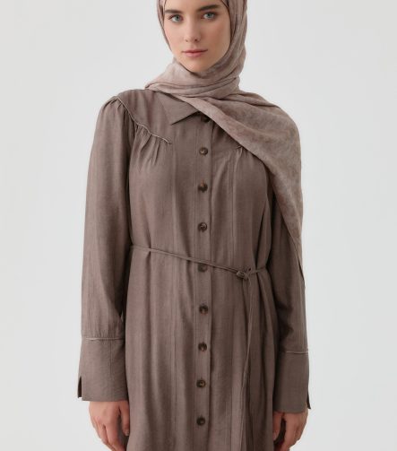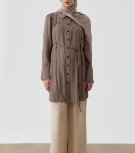 Coffee Ruffle-Gathered Tunic