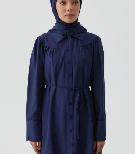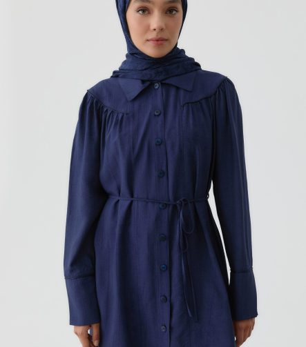 Ruffled Gather Tunic – Navy Blue