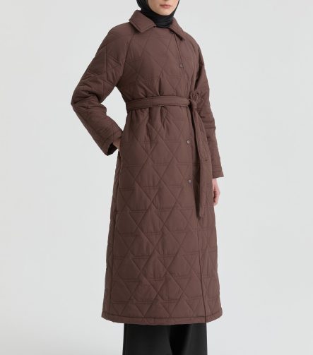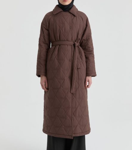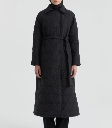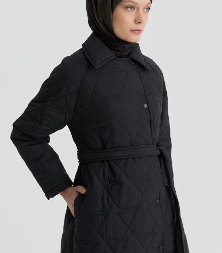 Quilted Coat with Cracked Glass Pattern – Black