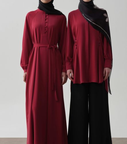 Half Placket Belted Dress – Red