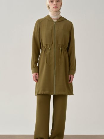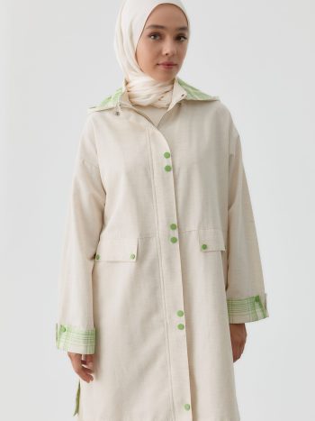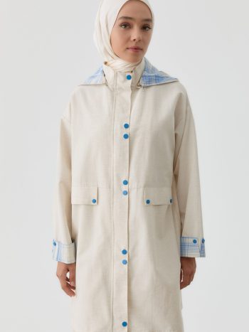 Snap Button Detailed Coat with Plaid Combo – Beige – Indigo