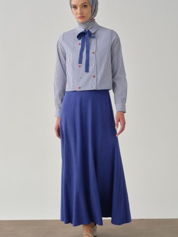 Six-Panel Stitch Detail Skirt – Saxony Blue