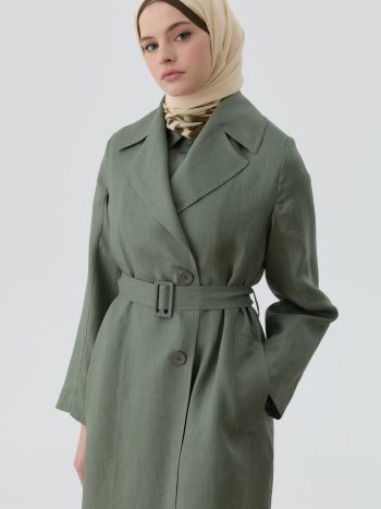 A timeless style with a natural textured fabric… This trench coat, with its breathable linen structure, offers an ideal alternative