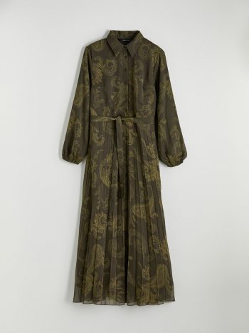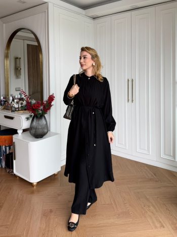 Color: Black Fabric: Dubai silk Sizes: 38-40-42-44-46-48 Length: 148 cm Care instructions: Dry cleaning recommended. The model is wearing size