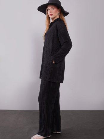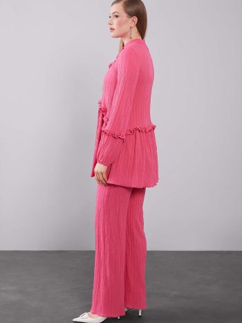 Fuchsia Half Placket Ruffle Detail Two-Piece Set