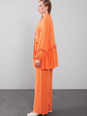 Orange Half-Sleeve Ruffle Detail Two-Piece Set