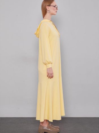 Pistachio Green Hooded Dress with Hidden Pocket Detail
