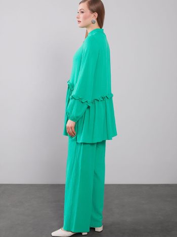 Green Half-Sleeve Ruffle Detail Two-Piece Set