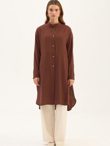 Brown Modal Tunic with Droplet Buttons