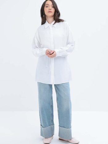 Capture a modern and comfortable style with our White Belted Viscose Shirt Tunic. Explore other models in ALLDAY’s Shirt Tunic