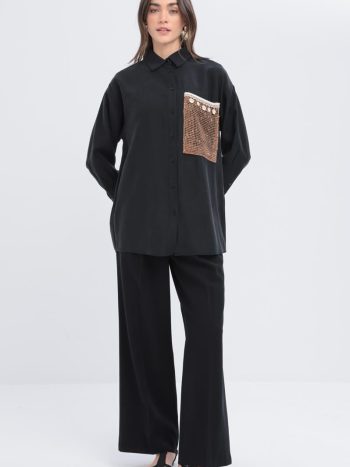 Capture a modern and comfortable style with our Black Mesh Pocket Detailed Shirt Tunic. Discover other models in ALLDAY’s Shirt