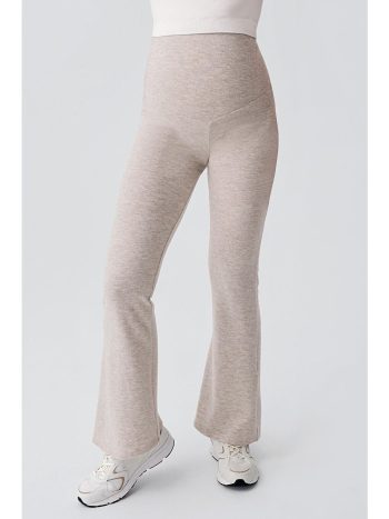 Beige Adjustable High-Waist Elastic Soft Textured Viscose Blend Maternity Pants HP02