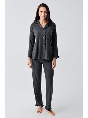 Anthracite Women’s Long Sleeve Stretch Cotton Maternity Pajama Set 22112