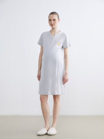 LCW DREAM Gray Hen Print Maternity Nightgown with V-Neck is available at LCW with exclusive discounts, installment options, and cash