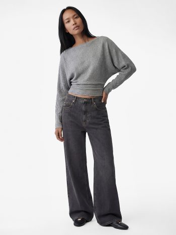 Regular Fit Long Bat-Sleeve Crew Neck Sweatshirt