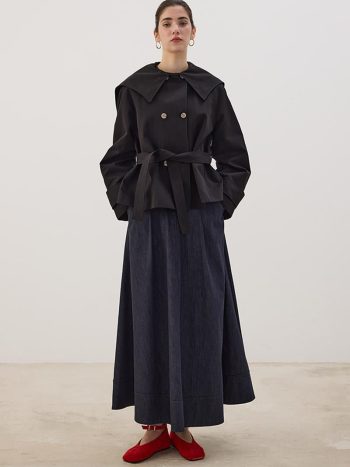 Black Wide Collar Short Trench Coat