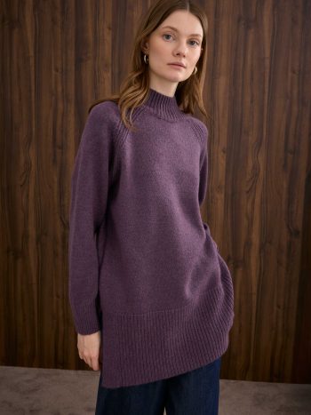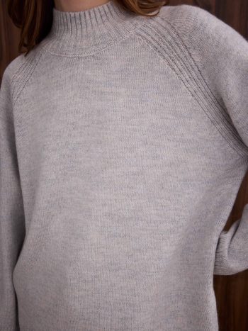 Crafted from a blend of 79% acrylic and 21% polyester yarn, this turtleneck basic sweater combines warmth, lightness, and durability