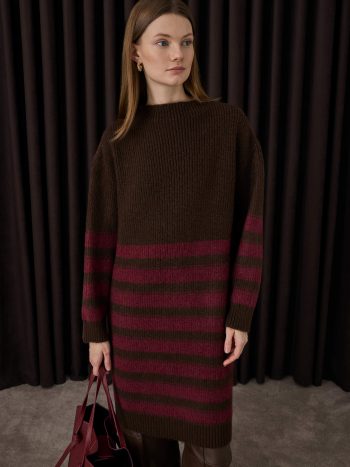 Crafted from a blend of 79% acrylic and 21% polyester yarn, this sweater offers a soft texture and shape-retaining structure,