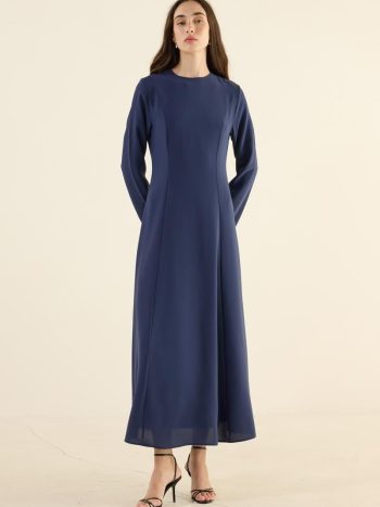 The Navy Blue Scoop Neck Evening Dress, with its clean lines and elegant silhouette, is destined to become an essential
