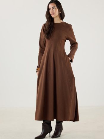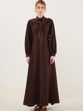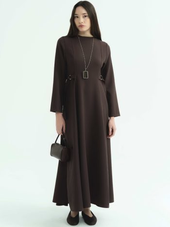 D Buckle Detailed Long Coffee Dress