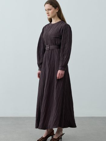 Brown Dress with Ribbed Belt