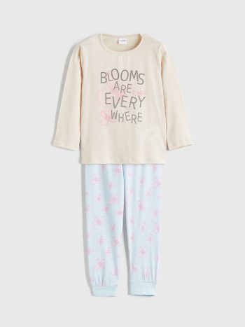 Beige Printed Girls’ Pajama Set