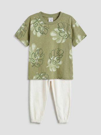 LCW baby Green Leaf Print Baby Boy T-Shirt and Pants Set with exclusive discounts, installment options, and cash on delivery