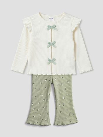 LCW baby Ecru Ribbon Baby Girl Ribbed T-Shirt and Leggings Set is available at LCW with exclusive discounts, installment options,