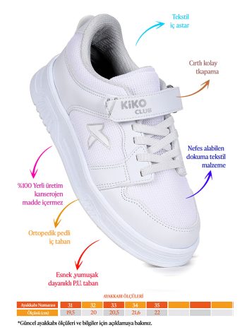 Kiko Kids White Liven Velcro Daily Girls’ Sports Shoes with exclusive discounts, installment payment options, and cash on delivery advantages