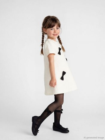 Ecru Bicycle Collar Bow Tie Girls’ Tweed Dress