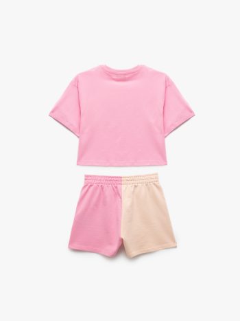 Girls’ Color Block Short Sleeve Crew Neck Cotton Shorts and T-Shirt Set