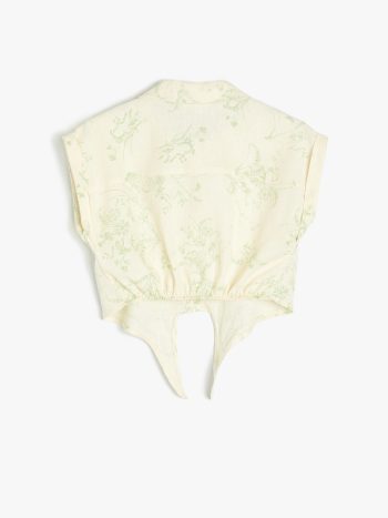 This versatile short-sleeve shirt features a front tie closure, print detailing, and a linen-viscose blend, making it a perfect match