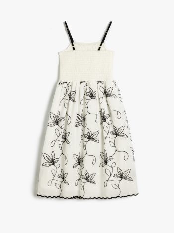 Discover the essential summer piece with Koton’s girl’s dress collection. Achieve a vibrant look with this strappy, frilly, floral-embroidered cotton