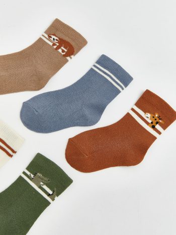 LCW baby Brown Animal Print Baby Boy Sock Set of 5 pairs with exclusive discounts, installment options, and cash-on-delivery advantages