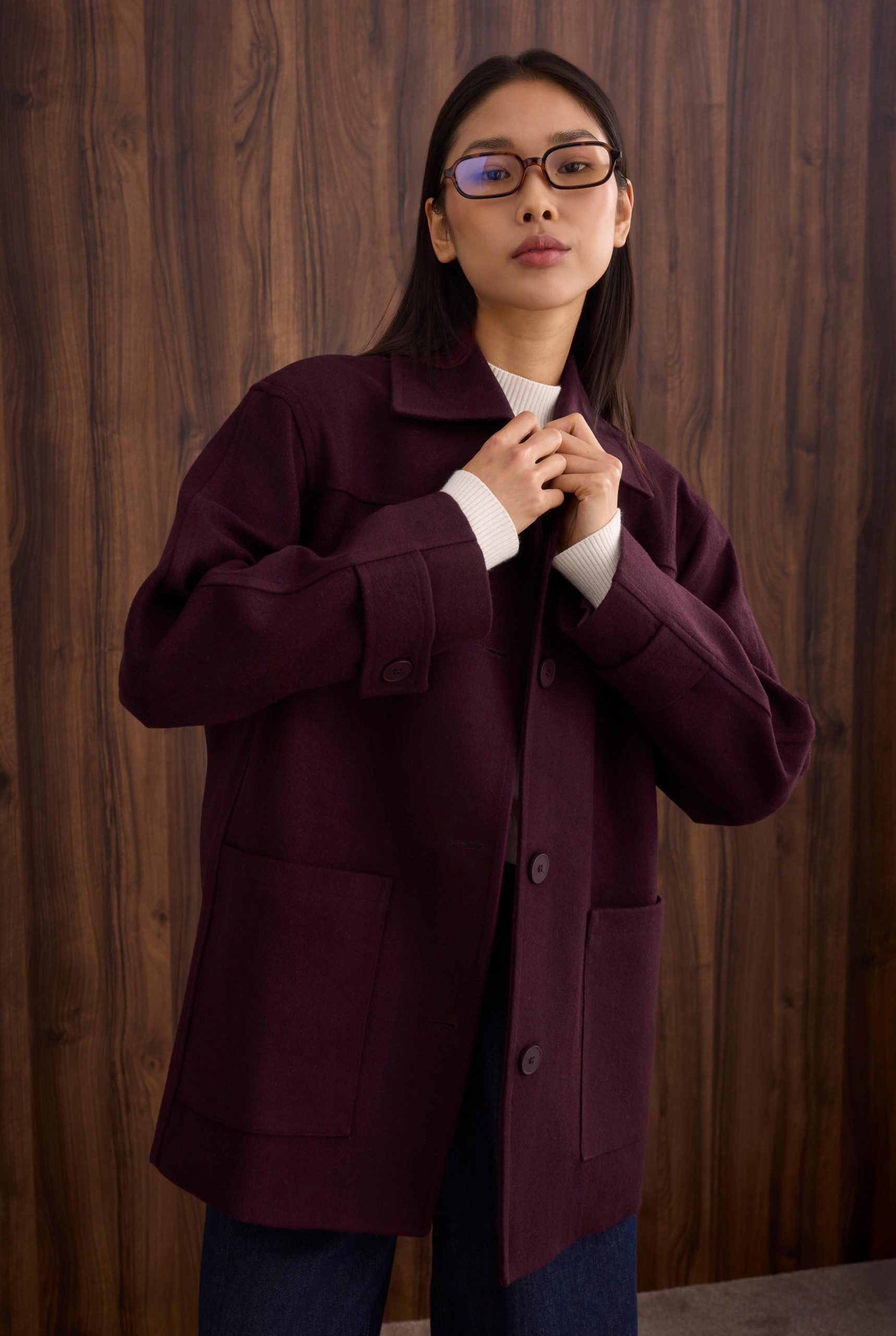 Burgundy Coat with Gather Details