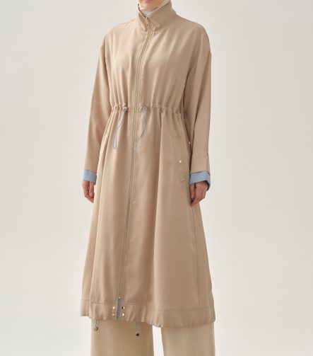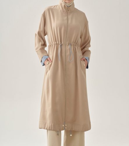 Elastic Waist Coat with Inner Combination – Beige