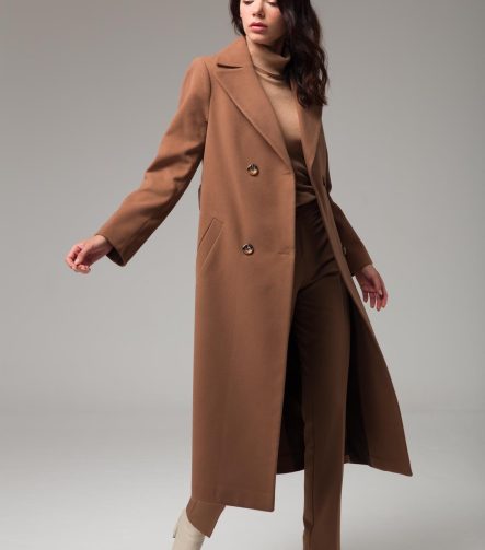 Buttoned Wrap Camel Coat
