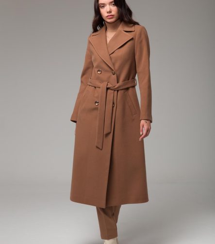 Crossover Belted Mid-Length Coat in Taba 3754