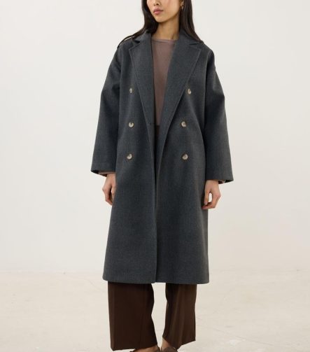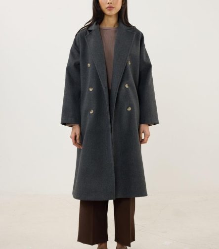 Buttoned Crossover Coat in Anthracite