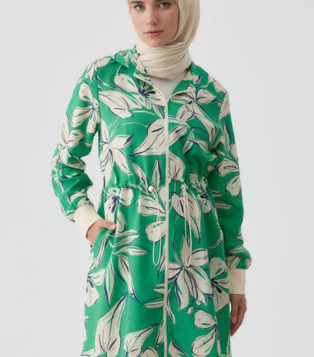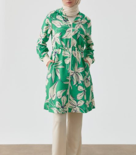 Snap Button Detailed Cape with Plaid Combination – Beige – Green