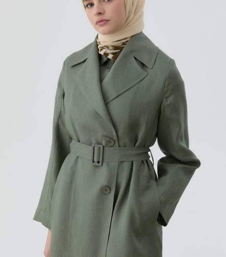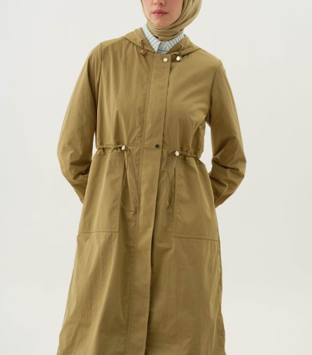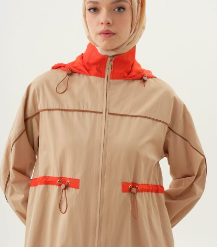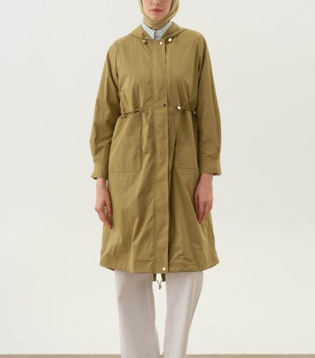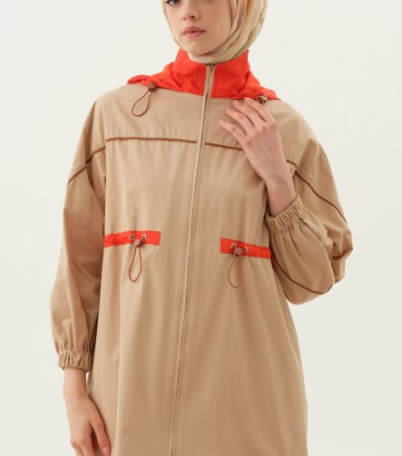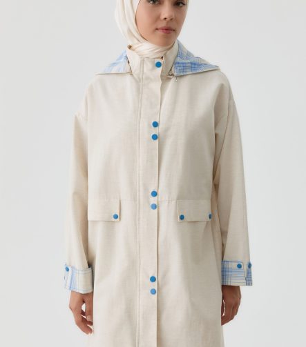 Snap Button Detailed Coat with Plaid Combo – Beige – Indigo