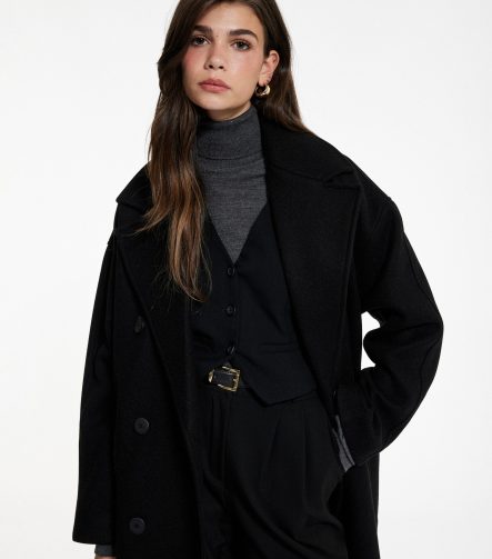 Belted Long Cashmere Coat with Pockets and Long Sleeves