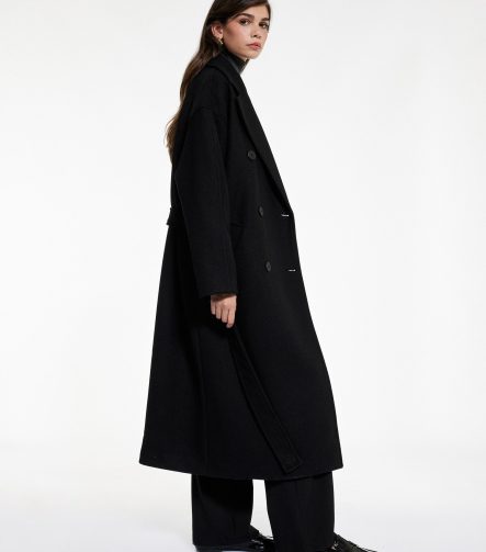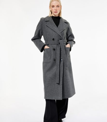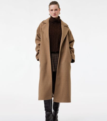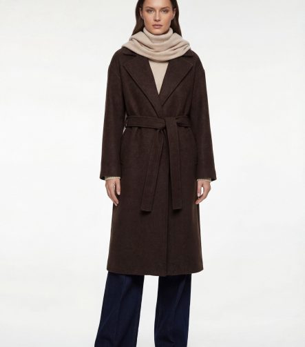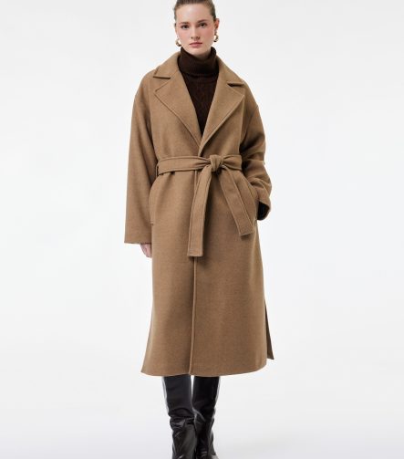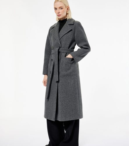 Long Belted Cashmere Coat with Pockets and Long Sleeves