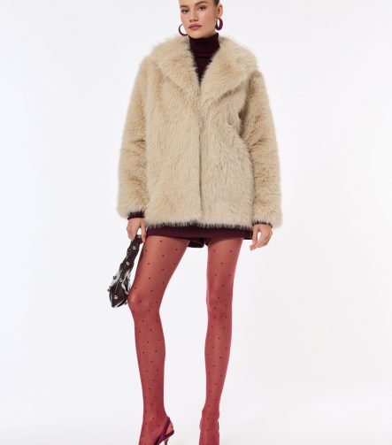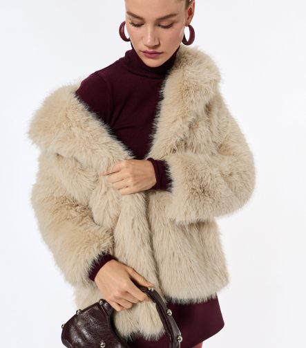 Faux Fur Coat with Cross Collar Long Sleeves