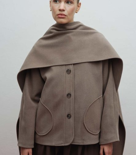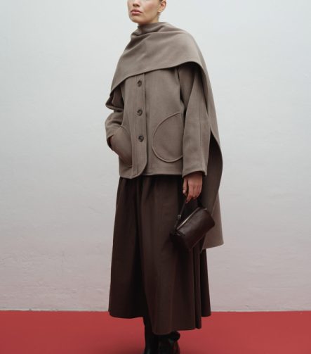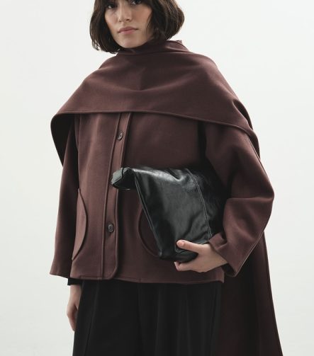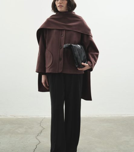 Cashmere-Look Hooded Burgundy Coat with Scarf
