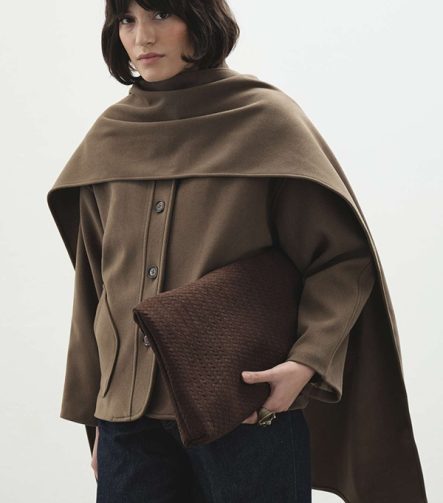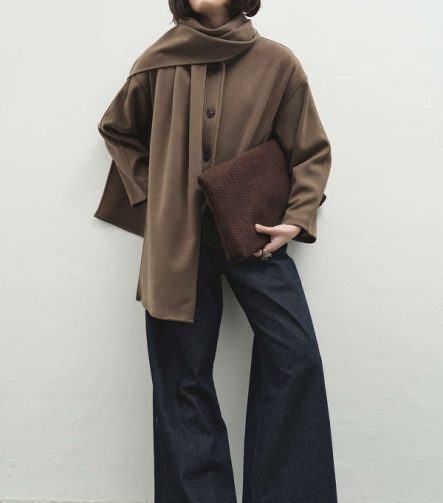 Khaki Trench Coat with Cashmere-Look Scarf