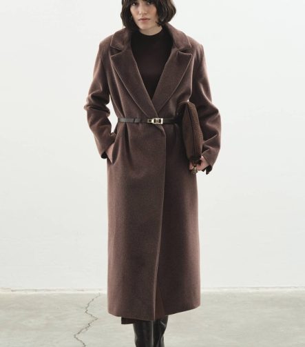 Long Double-Breasted Cashmere Coffee Coat